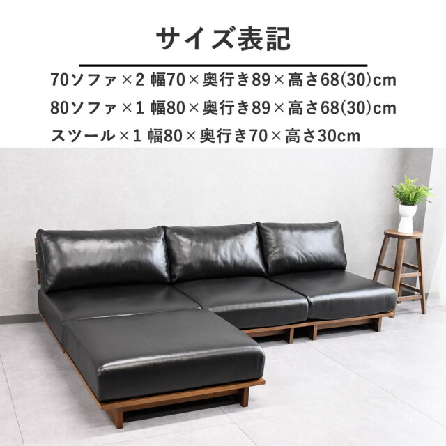 | サイズ | 70ソファ×2 幅700×奥行890×高さ680(300)mm/80ソファ×1幅800×奥行890×高さ680(300)mm/スツール×1幅800×奥行700×高さ300mm/ |
