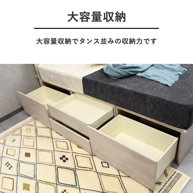 特徴 | タンス並みの収納力のあるシングルベッドです スライドレールで開閉はスムーズです |