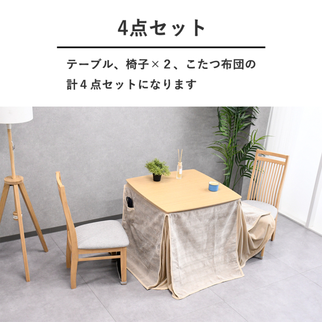 特徴 | ダイニングテーブルこたつ4点セットです 無垢材を使用しており高級感があり頑丈です 80cm幅の標準的なサイズでこたつダイニングとしてご使用頂けます マジックテープですぐ取り外しが可能な専用カバー付きです ハイバック仕様のおしゃれなダイニングチェアーです。 寒冷地仕様の石英管になります。 |