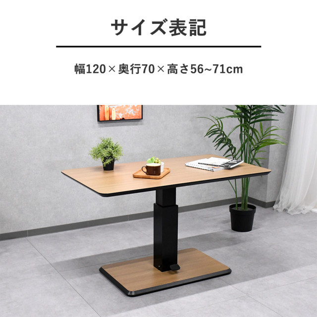 特徴 | ペダルで簡単昇降のテーブルです 120cm幅でソファーダイニングにも合わせやすいテーブルです。 2カラーでおしゃれに仕上がっております。 |