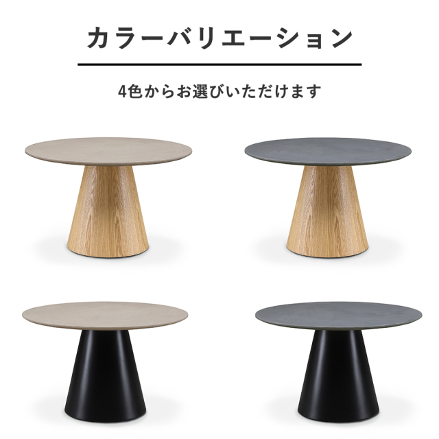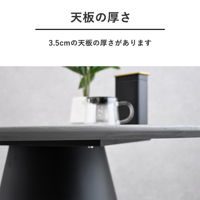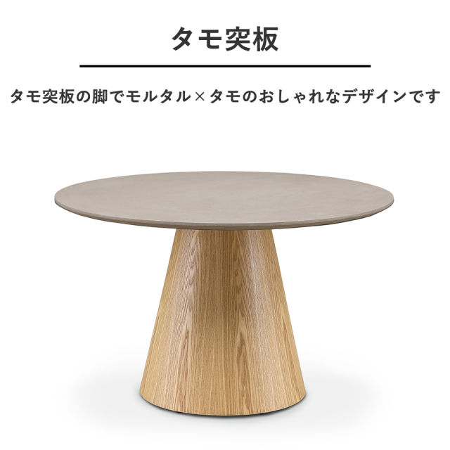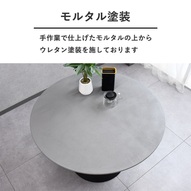 特徴 | モルタル塗装の味わい深い風合いの丸ダイニングテーブルです。食事の際など互いの顔がよく見えるのも嬉しいポイントです。 |