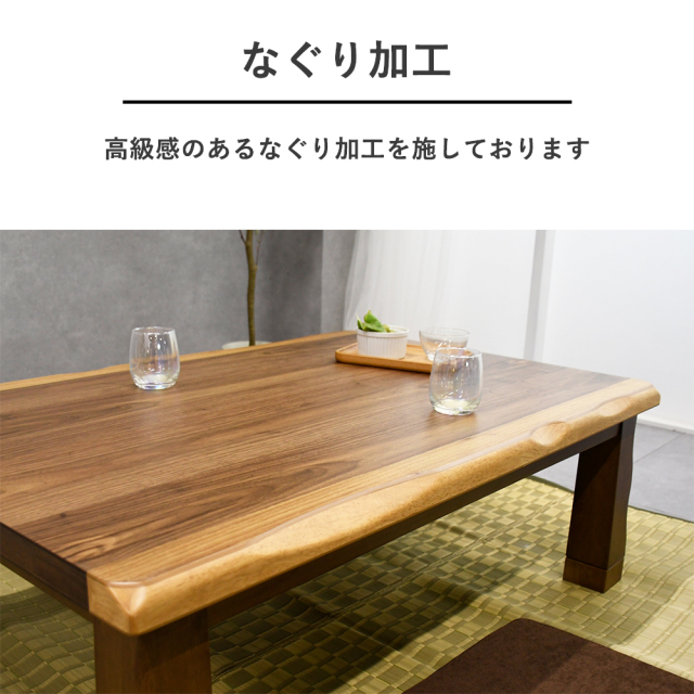 特徴 | 一枚板風のおしゃれな天板です。 ウォールナット突板を使用した高級感ある天板です なぐり加工を施しており、温かみのあるデザインになっております 3サイズをご用意し、120 135 150cmの3サイズからお選び頂けます |