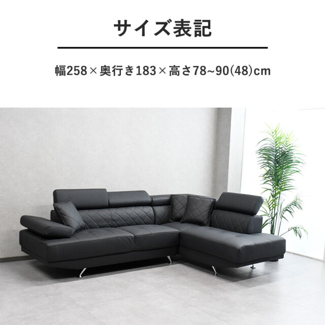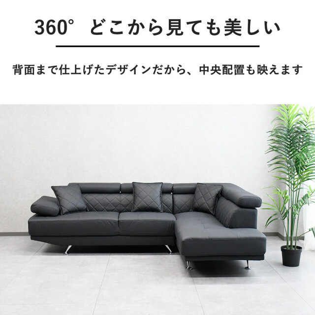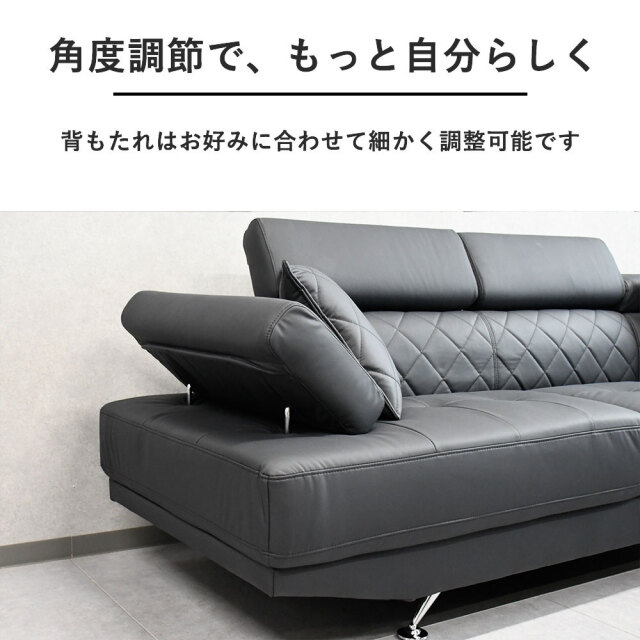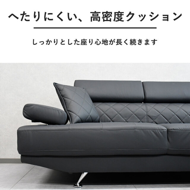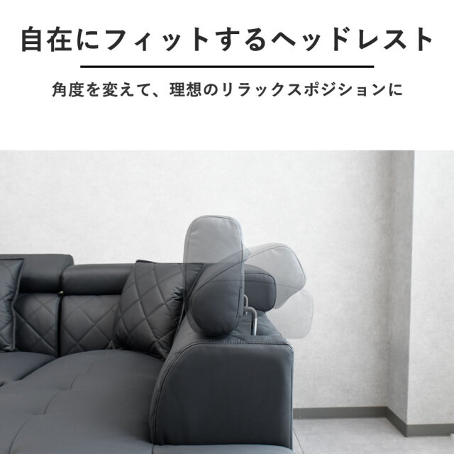 特徴 | 高級感がありながらオシャレなデザインの大型カウチソファです。ヘッドレストがついており首元も楽々です。 |