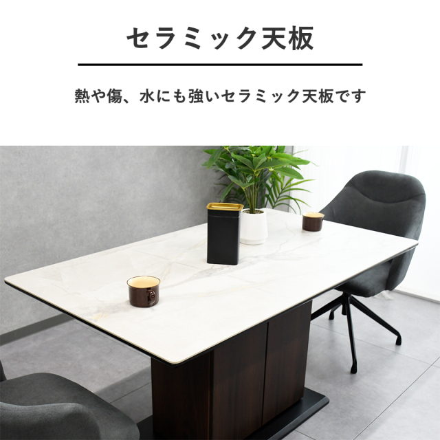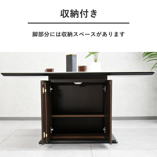 特徴 | セラミック素材を使用した熱にも傷にも水にも強い素材です 熱々の鍋を直接テーブルに置けます 脚部には収納スペースがあり大変便利です |