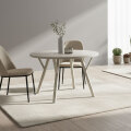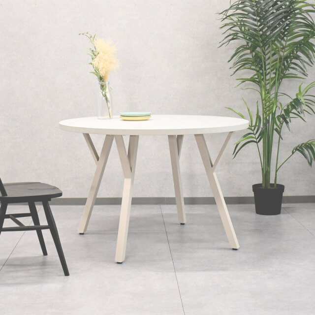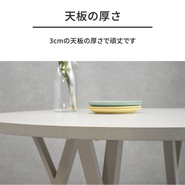 特徴 | 汚れや傷に強いメラミン素材を使用した天板です。 天板のアイボリーと脚部のグレージュの組み合わせがおしゃれなテーブルです。 サイズは日本の住宅に合わせやすい110cm幅です。 囲えるテーブルで会話が弾みます。 当店オリジナルの110cm幅のダイニングテーブルです。 |