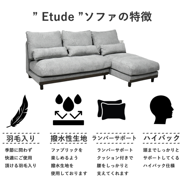 特徴 | 水に強いファブリックを使用しております 羽毛を使用しオールシーズン快適にご使用頂けます ハイバック仕様で頭までしっかりとサポートしてくれます |