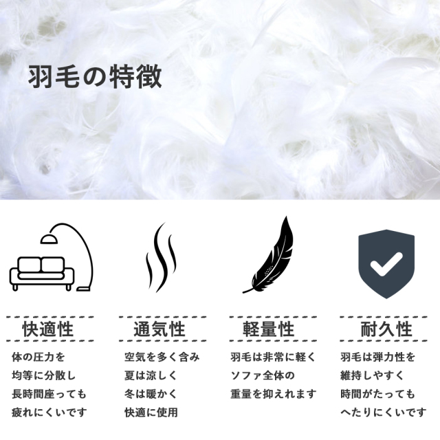 素材 | 撥水ファブリック フェザー(羽毛) ウレタンフォーム シリコンフィル |
