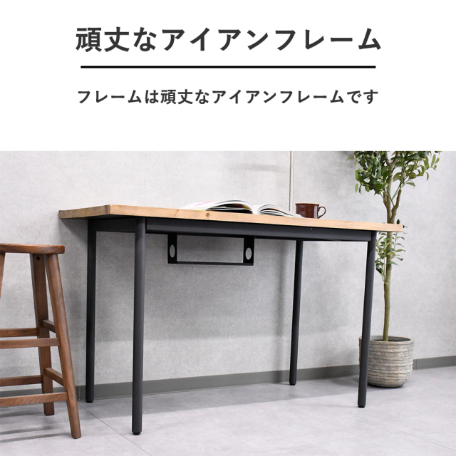 特徴 | パイン古木を使用したおしゃれな天板の120cm幅のデスクです アイアンのフレームを利用した頑丈なデスクです アジャスター付きで万が一のガタツキも防止します |