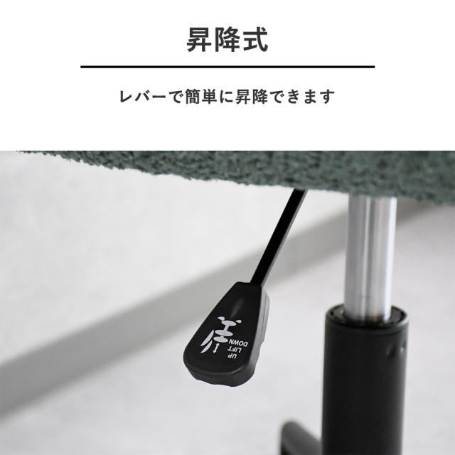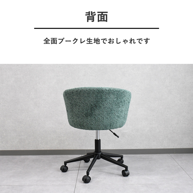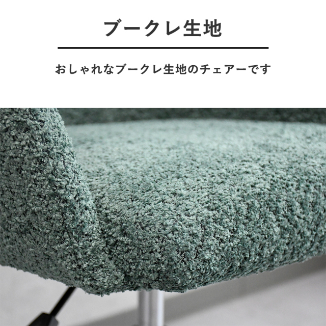 特徴 | アウトレットのお洒落なブークレ生地の昇降・回転式のダイニングチェアです |