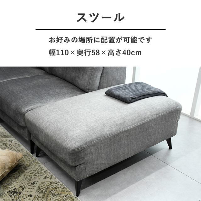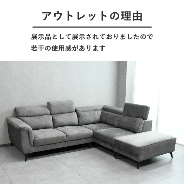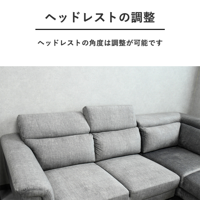 特徴 | 世界レベルの安全基準をクリアした生地ファブリック(エコテックススタンダード100)の大型カウチソファ。ヘッドレストも付いておりワンランク上のリラックス空間を演出いたします。 |