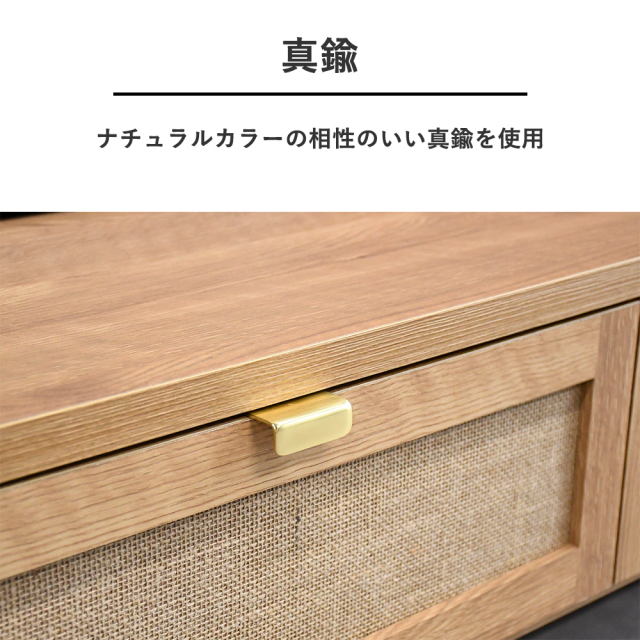 特徴 | 180cm幅の麻を使用したベーシックでありながら、お部屋のアクセントになってくれるテレビ台です。扉を閉めたままブルーレイなどの操作可能です。完成品ですので到着後すぐご使用頂けます。 |