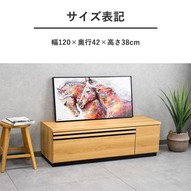 特徴 | 120幅のオーク材安心・安全の完成品国産テレビボードです。閉めたままでブルーレイ等の操作可能です。 |