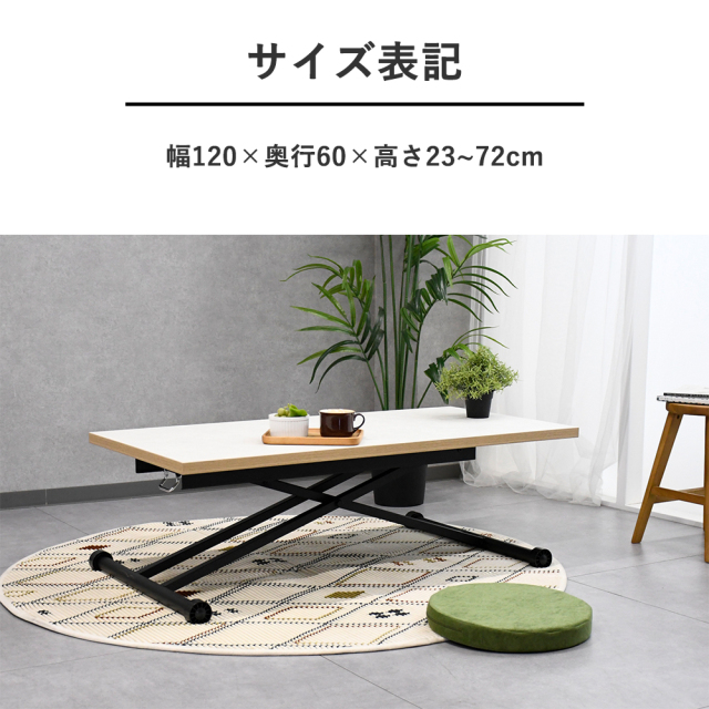 | サイズ | 幅1200×奥行600×高さ230-720mm |