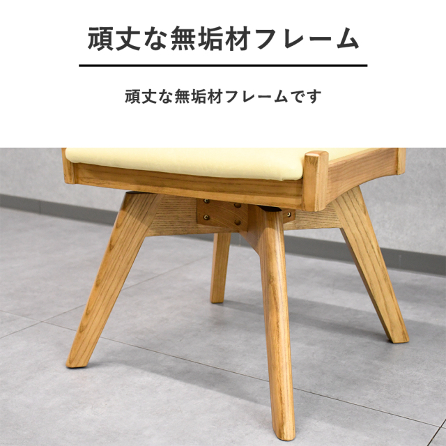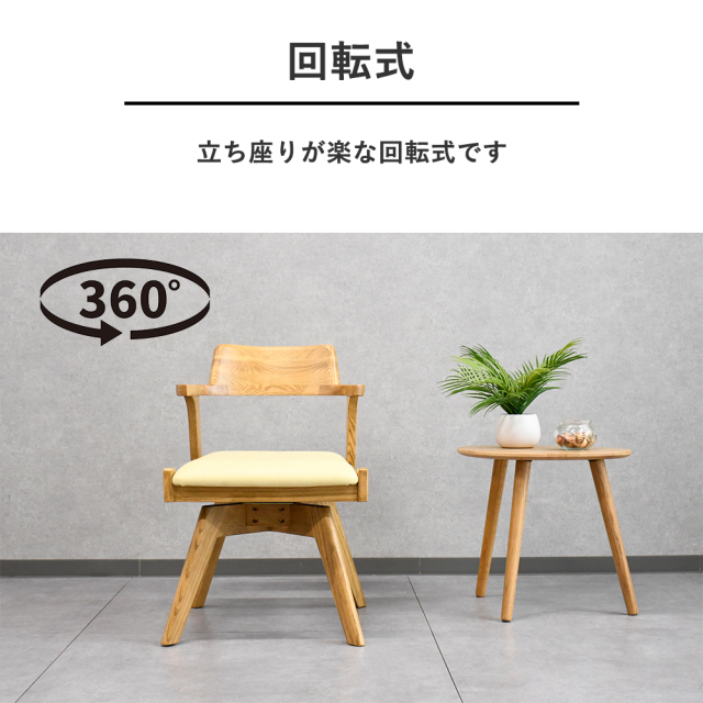 特徴 | オーク無垢を使用した木の風合いを存分に味わえるお洒落な回転式チェアです。ダイニングだけでなく様々な用途でご使用頂けます。 |