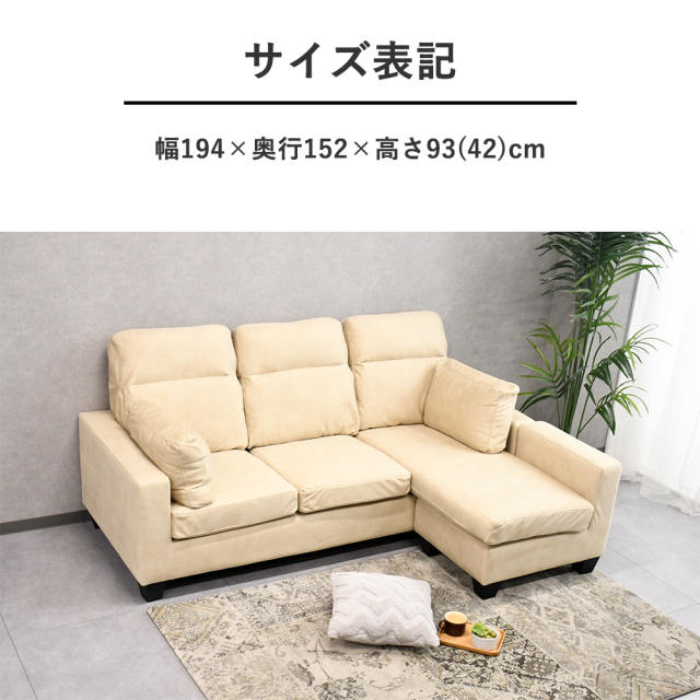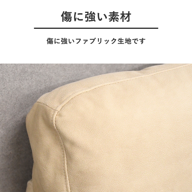 特徴 | レザーファブリック生地のカウチソファです。傷や汚れに強い素材です。 |