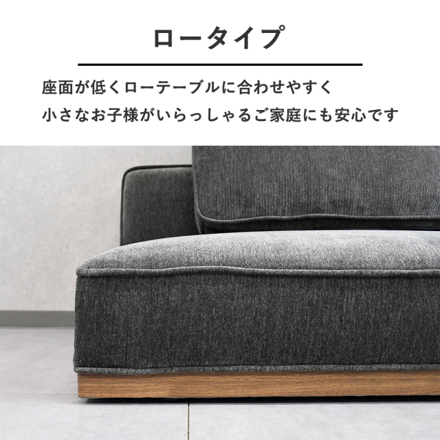 特徴 | ファブリック生地のロータイプ3人掛けソファです。 |