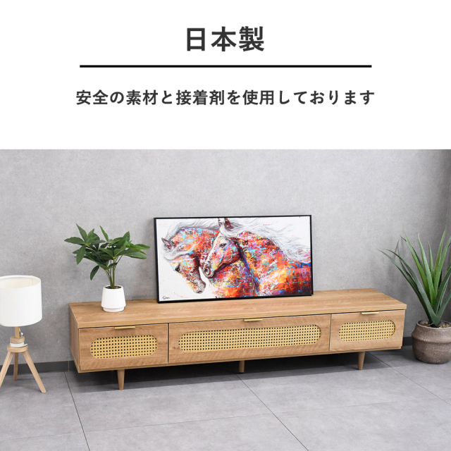 特徴 | 安心安全国産180cm幅のテレビ台です。扉を閉めたままブルーレイなどの操作可能です。完成品ですので到着後すぐにご使用頂けます。 |