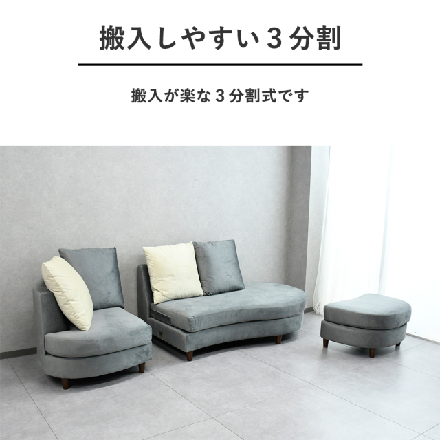 特徴 | 撥水生地を使用したカウチソファです。丸みを帯びたデザインがオシャレな空間を演出いたします。 |