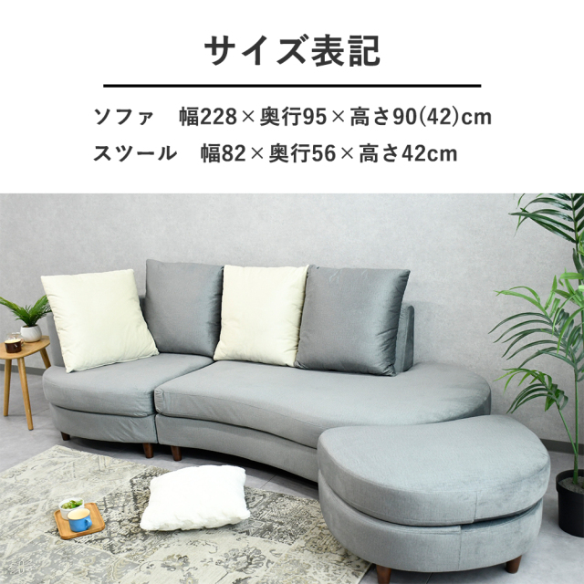 | サイズ | ソファ 幅2280×奥行950×高さ900(420)mm/スツール幅820×奥行560×高さ420mm |