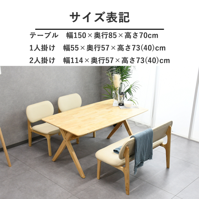 | サイズ | テーブル幅1500×奥行850×高さ700mm/1人掛け 幅550×奥行570×高さ730(400)mm/2人掛け 幅1140×奥行570×高さ730(400)mm |