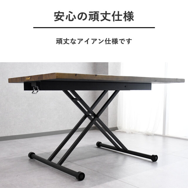 特徴 | 140cm幅のおしゃれで便利な昇降式のセンターテーブルです。センターテーブル・デスク・ダイニングいろいろな用途にご対応可能です。 |