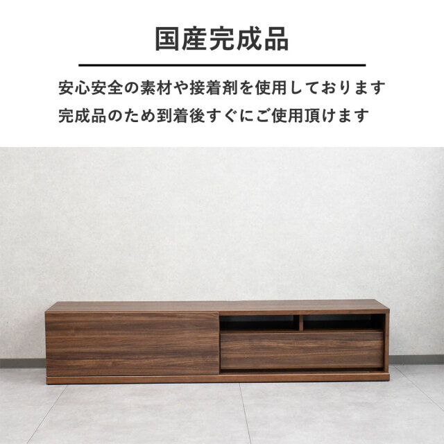 特徴 | 国産品。180cm幅のテレビ台です。扉を閉めたままブルーレイなどの操作可能です。完成品ですので到着後すぐにご使用頂けます。 |