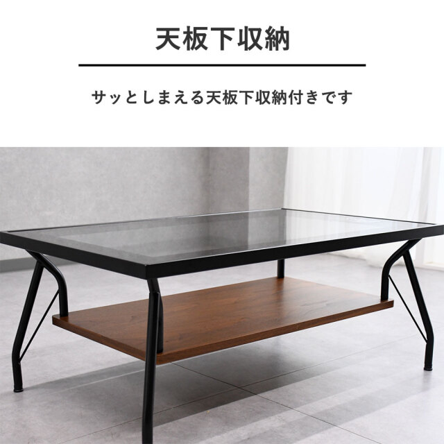 特徴 | 90cmガラステーブル。棚も付いており雑誌・リモコン等置いて頂けますので大変便利です。 |