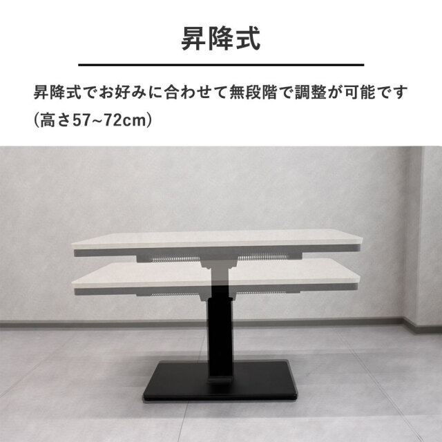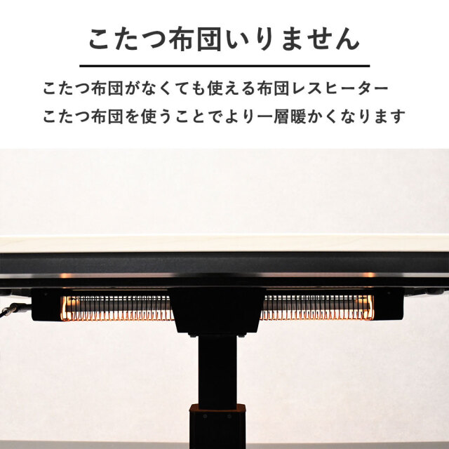 特徴 | 120cm幅の昇降こたつテーブル。ソファーやチェアを合わせデスクワーク・食事など使い方自由。こたつ機能付きで大変便利な1台です。 |