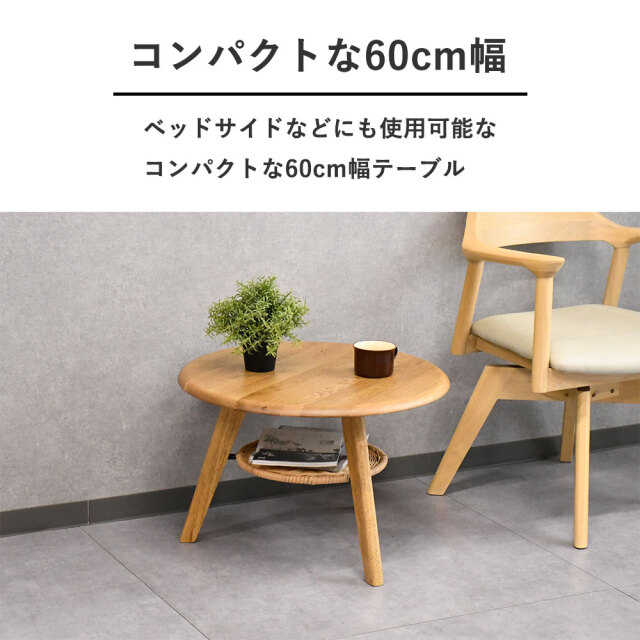 【新品アウトレット】オーク無垢材60cm幅サイドテーブル FH26B