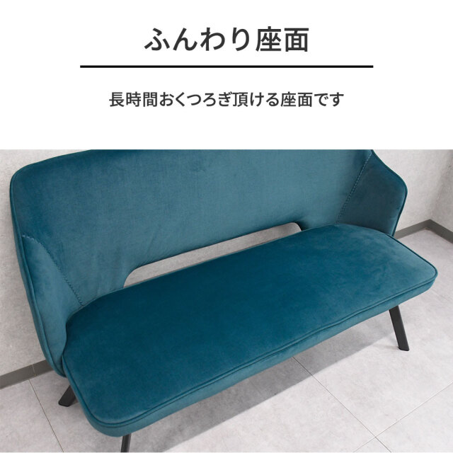 特徴 | オシャレなデザインの2人掛けソファ。清潔感があり肌触り良くスタイリッシュな素材です。 |