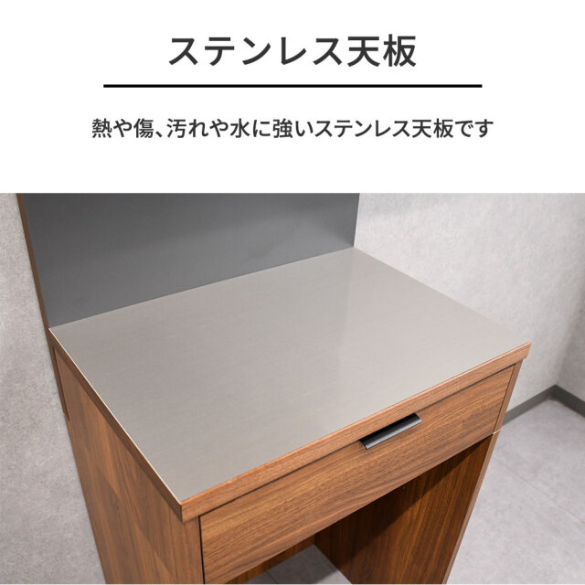 特徴 | 国産品。60cm幅の食器棚です。天板ステンレス。完成品の為、到着後すぐにご使用いただけます。 |