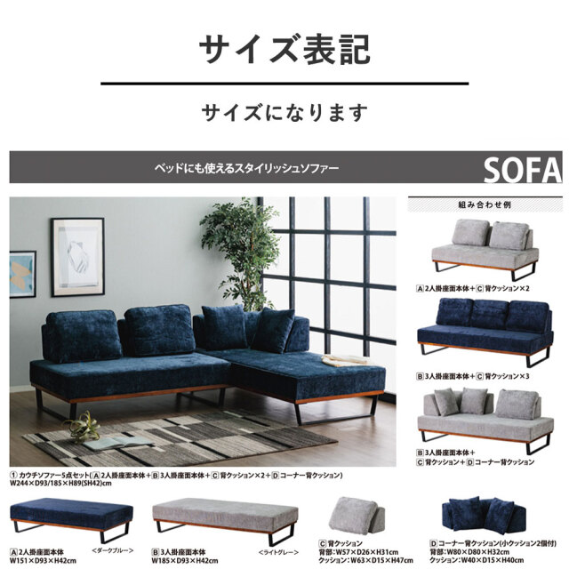 3人掛けやカウチ、2人掛けなどにも自分に合わせて選べます。