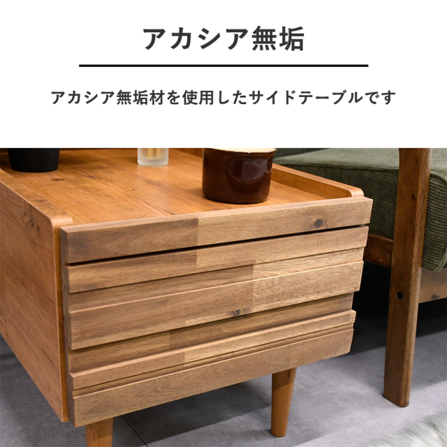 特徴 | おしゃれなアカシア無垢材を使用したサイドテーブルです |