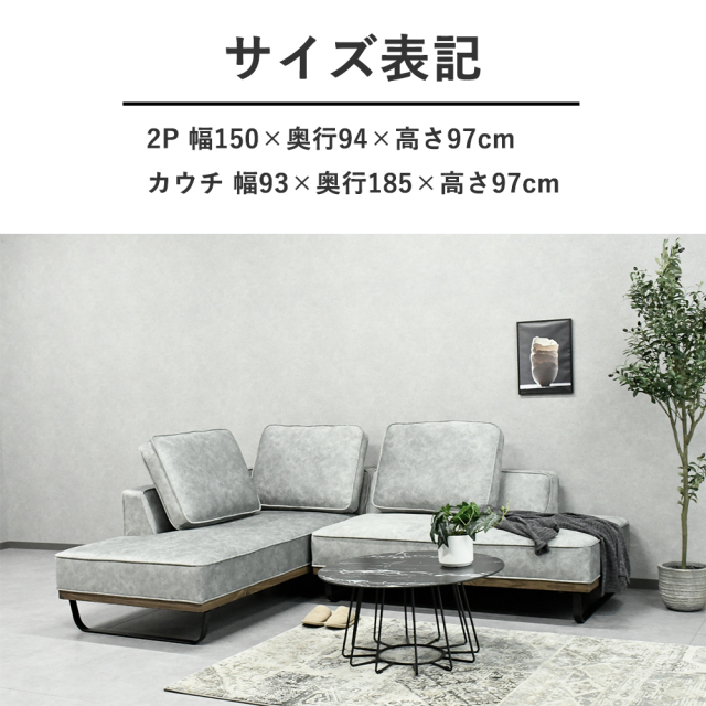 | サイズ | 2P 幅150×奥行94×高さ97cm カウチ 幅93×奥行185×高さ97cm |