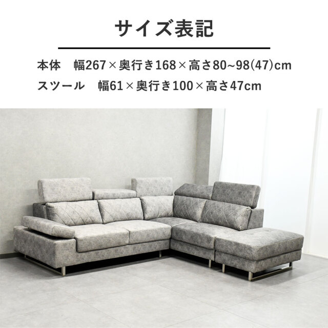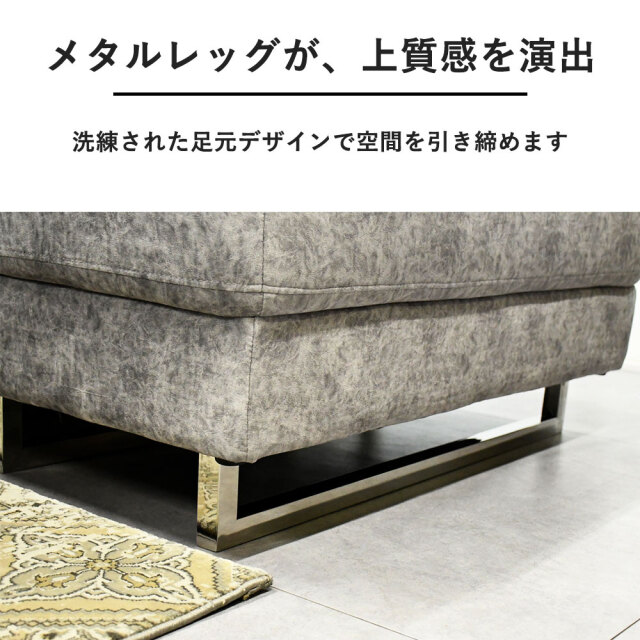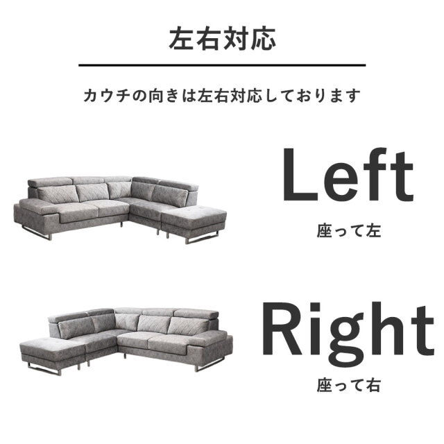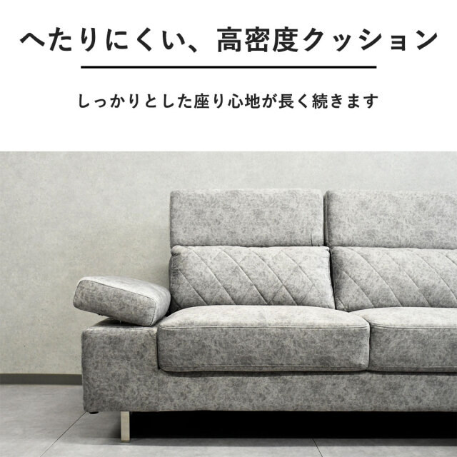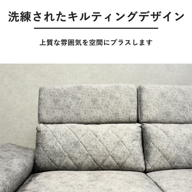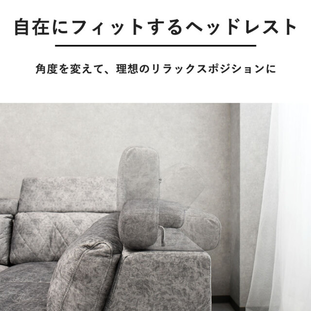 特徴 | 高級感があり傷や汚れに強い大型カウチソファです。スムーステックの肌触りよくヘッドレストも付いており首元も楽々です。 |