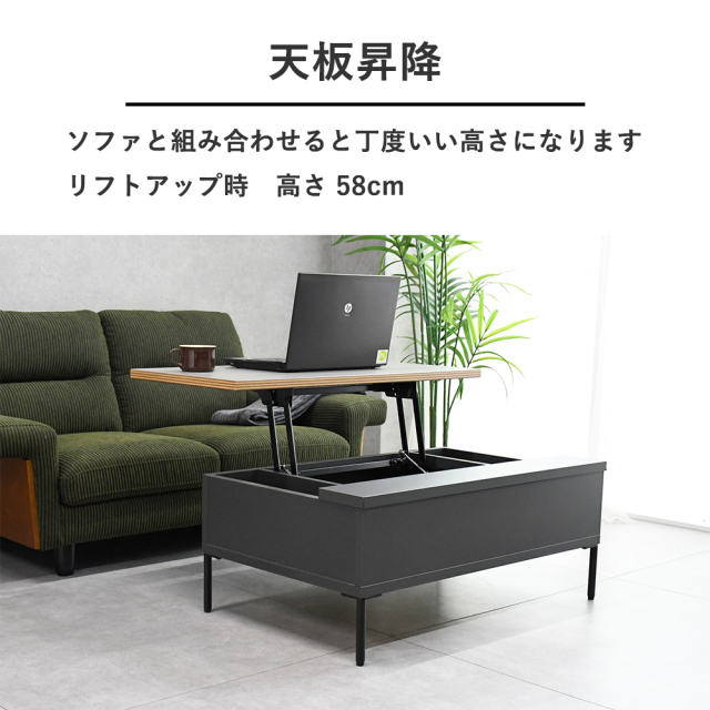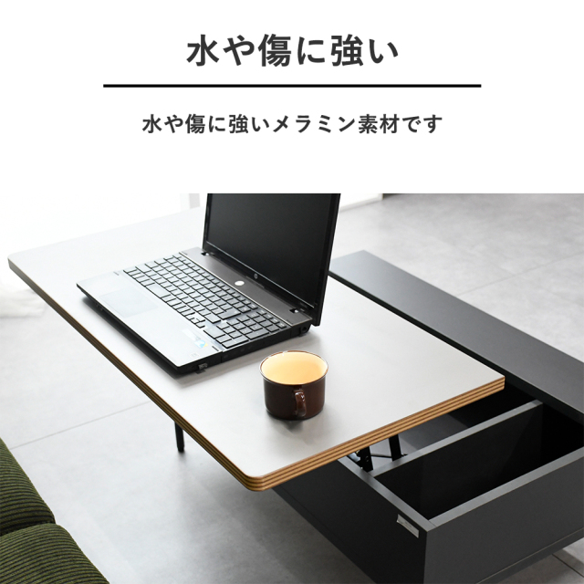 【新品アウトレット】 国産昇降テーブル 90cm 収納付き FI8E