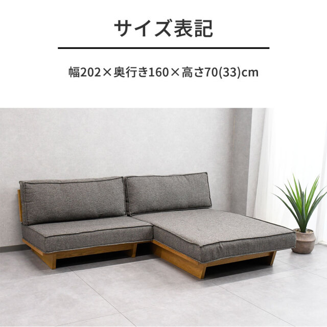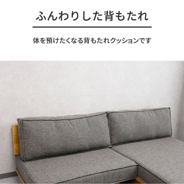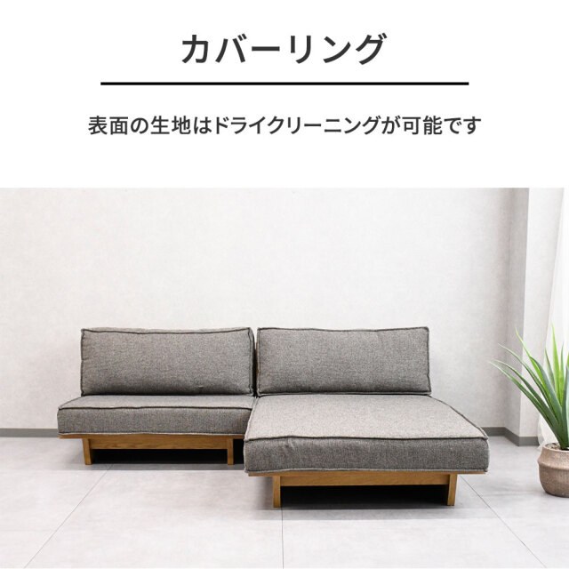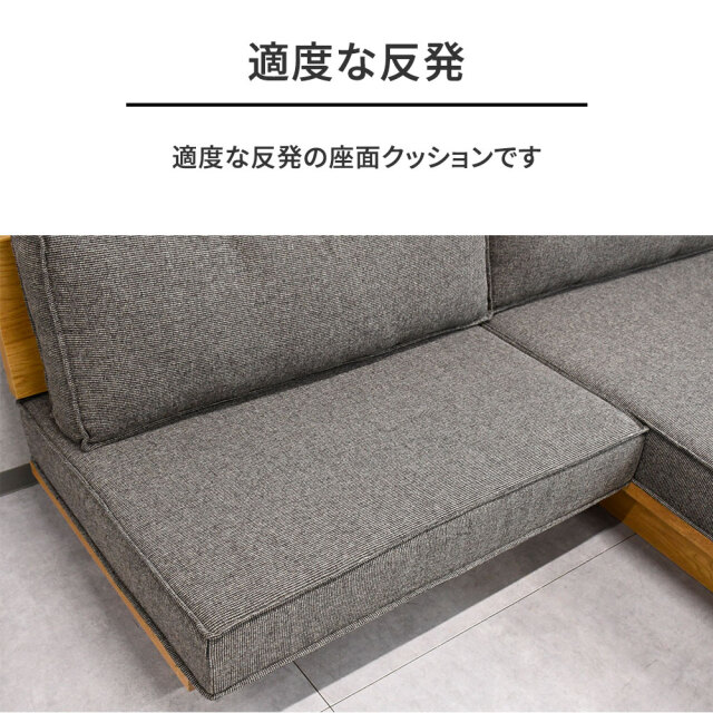 特徴 | ファブリック×オーク材のカウチソファーです。スタイリッシュな見た目でありながら存在感抜群。 |