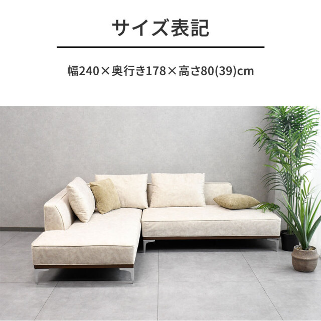 スムーステックで肌触りの良いキズ・汚れに強いカウチソファです。スタイリッシュでお部屋もスッキリ。