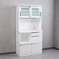 特徴 | 90cm幅の清潔感のある鏡面食器棚です。大半完成品の為、到着後すぐにご使用いただけます。 |