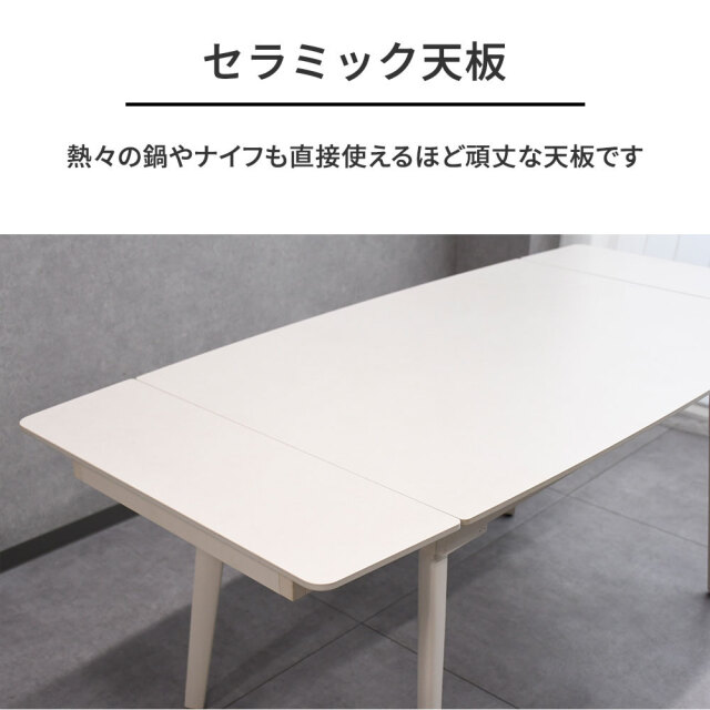 特徴 | 伸長式セラミックのダイニングテーブルです。耐久・耐熱に優れた素材です。 |