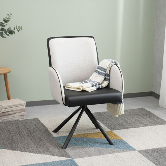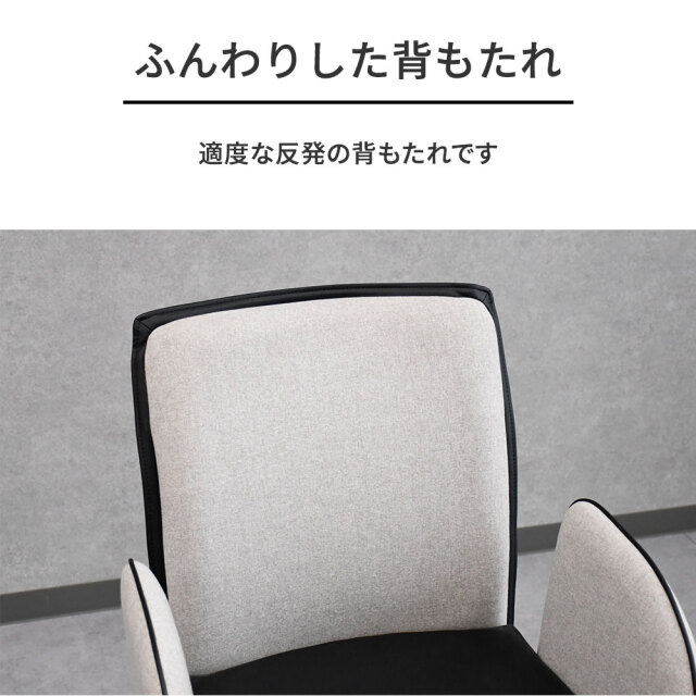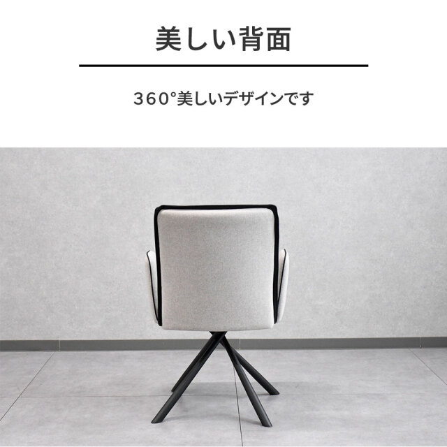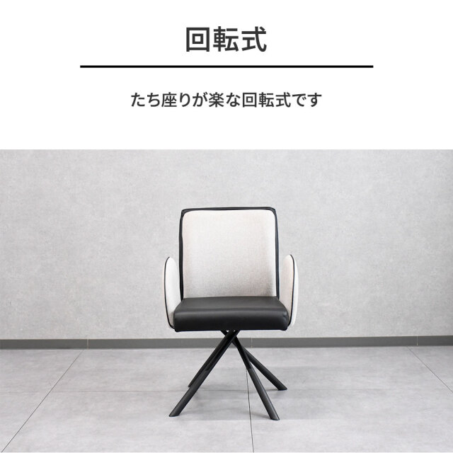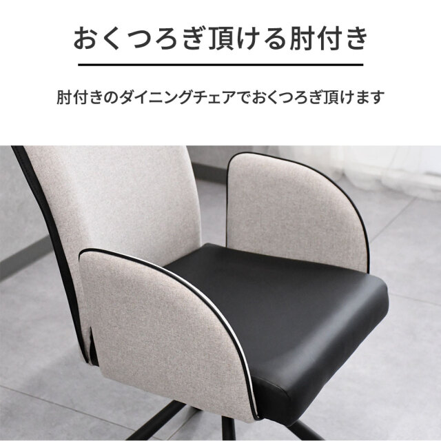 特徴 | 肘付き・回転式のダイニングチェアです。ダイニングだけでなく様々な場面の椅子としてもご使用頂けます。 |