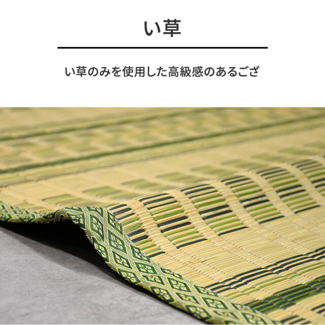 特徴 | 6畳用。い草の特長である高い吸湿性や防臭効果などを活かすことで、素肌にやさしく快適な使用感が心地よい空間を与えてくれます。 また、い草本来の抗菌・防臭効果でお洗濯の必要がなくお手入れも簡単です。 |