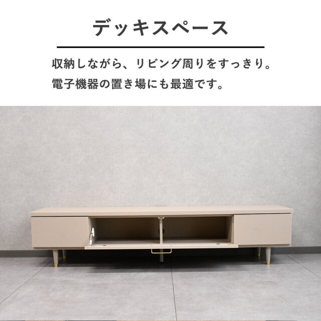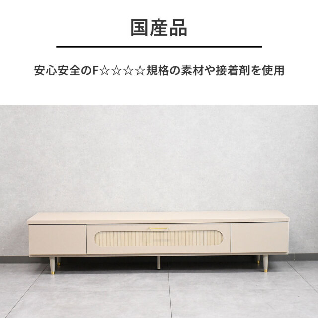 特徴 | 国産品。180cm幅のテレビ台です。扉を閉めたままブルーレイの操作など可能です。大半完成品ですので到着後すぐにご使用頂けます。 |