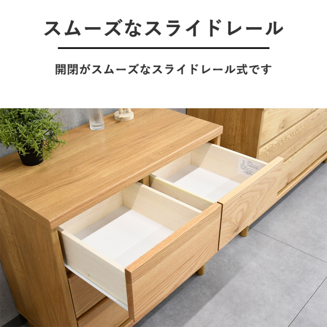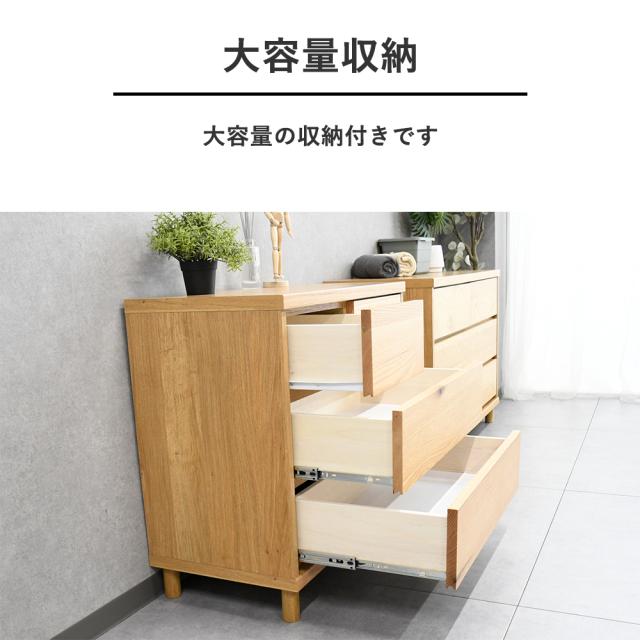 特徴 | 国産で安心安全。ホワイトオーク材を使用したシンプルで使い勝手抜群のお洒落なチェストです。 |
