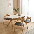 特徴 | セラミック天板は熱や傷に強く、日常使いに最適です。オーク無垢の脚は安定性が高く、洗練されたデザインです。アッシュ無垢のチェアは背中を包み込むようなデザインで、快適な座り心地を提供します。落ち着いたナチュラルな雰囲気で、どんなインテリアにも合います。 |
