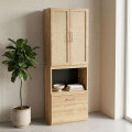 特徴 | このナチュラルウッドキャビネットは、オーク無垢材を使用した頑丈な作りで、美しい木目が印象的です。高さを変えられる棚板と、引き出し式のスライド棚が使いやすさを高めます。電源タップ付きで、家電の使用も快適に行えます。スマートなデザインで、リビングからオフィスまで幅広いシーンに対応します。 |