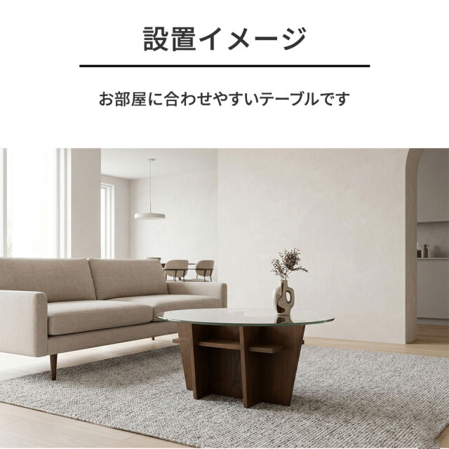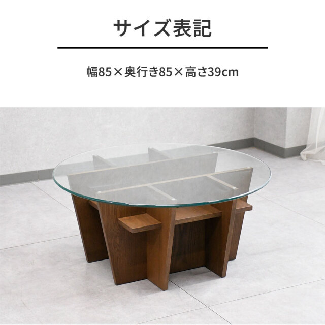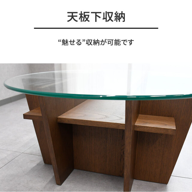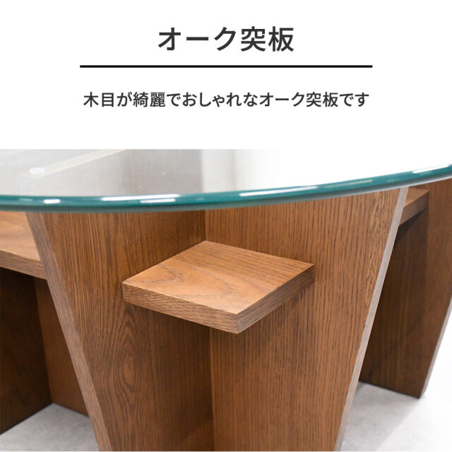 特徴 | 85cm幅のオーク×ガラスのセンターテーブル。お洒落なデザインです。 |