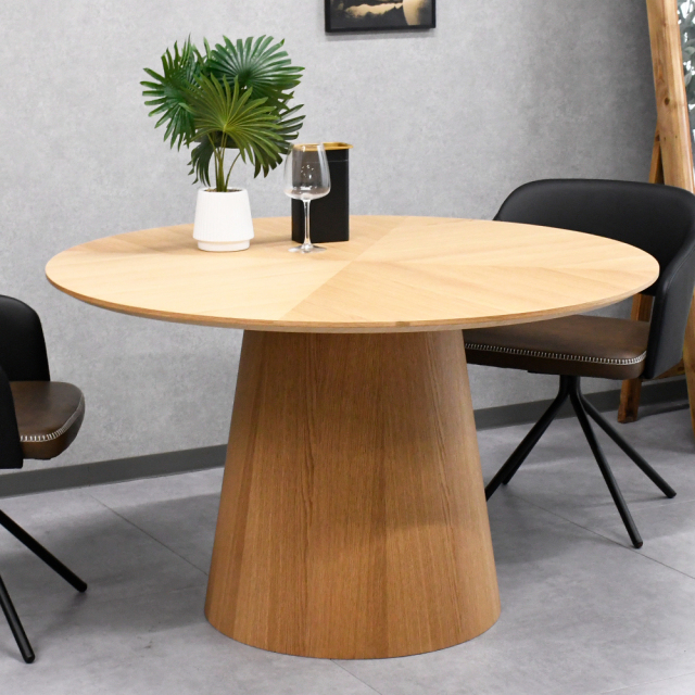 ヘリンボーン120cm幅丸形ダイニングテーブル OD13K [アウトレット:打ち傷]