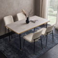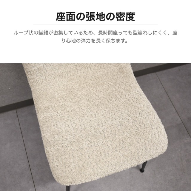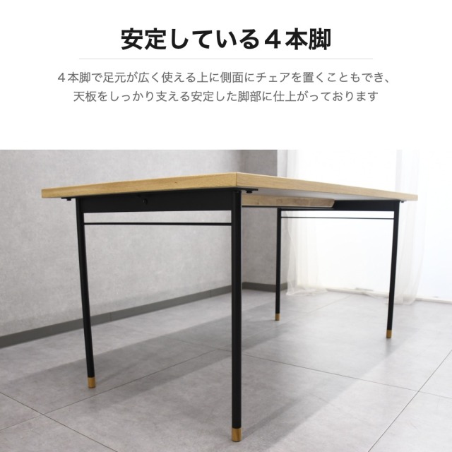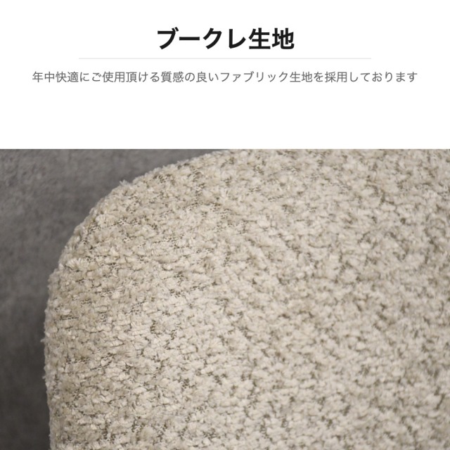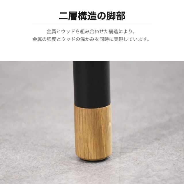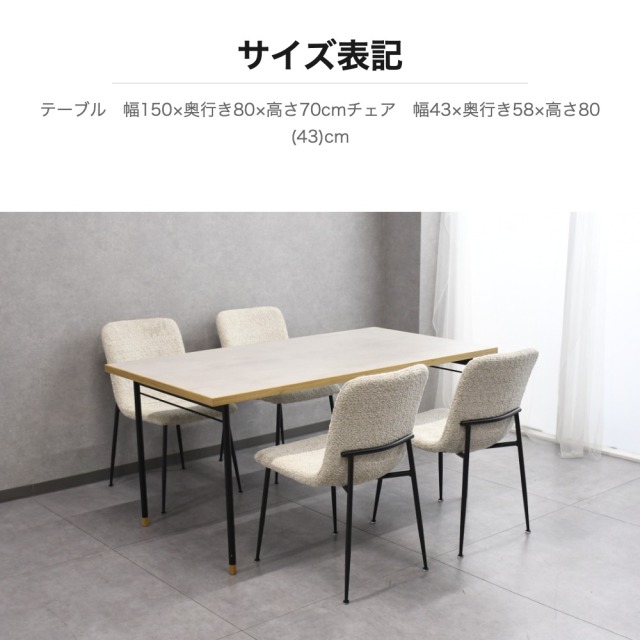 特徴 | 汚れや傷、水に強いメラミン素材の天板に、オーク無垢材の縁を組み合わせたジャパンディな雰囲気のダイニングテーブルです。4本脚で足元が広く使え、側面にもチェアを配置可能。チェアは年中快適に使用できるブークレ生地を採用し、背もたれの曲線設計が背中を優しく包み込みます。金属とウッドを組み合わせた二層構造の脚部がモダンなアクセントとなり、リビングダイニングをスタイリッシュに演出します。 |