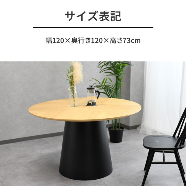 特徴 | 120cm幅。オーク突板、オシャレなデザインの円形のダイニングテーブルです。 |